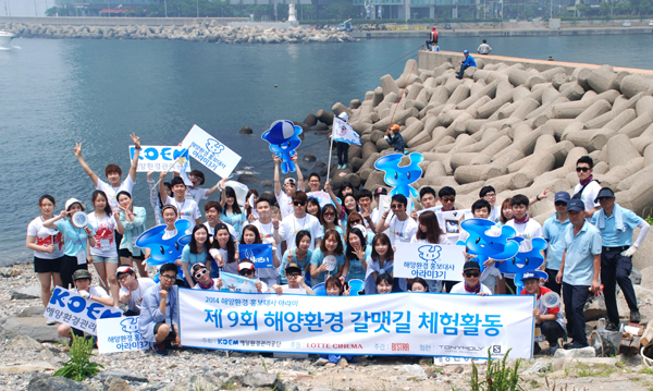 해양환경관리공단(KOEM, 이사장 곽인섭)의 2014년 대학생 해양환경 홍보대사 ‘아라미’ 50명과 공단 부산지사 10여명은 7월 1일 부산 해운대 APEC나루공원 인근 해안가에서 해초와 쓰레기 제거작업을 실시했다.