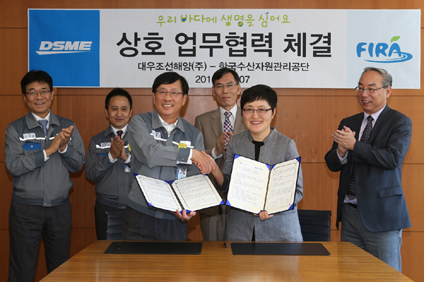 한국수산자원관리공단(FIRA, 이사장 강영실)은 10월 7일 대우조선해양(DSME)과 바다녹화 및 수산자원조성 캠페인 행사를 주요 내용으로 하는 업무협약(MOU)을 체결했다.