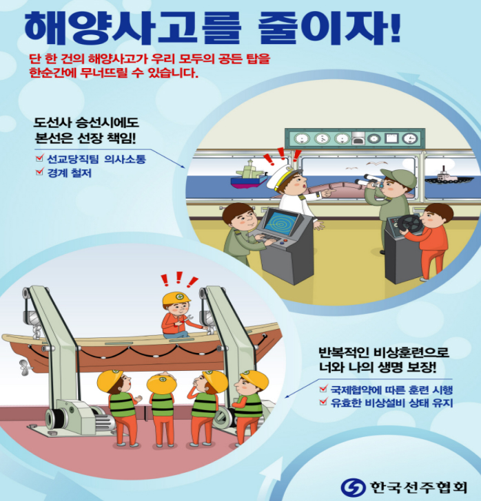 한국선주협회(회장 이윤재)는 해양사고 예방을 위한 선내안전수칙을 주제로 선박안전 포스터를 제작하여 전 회원사에게 배포할 예정이다.