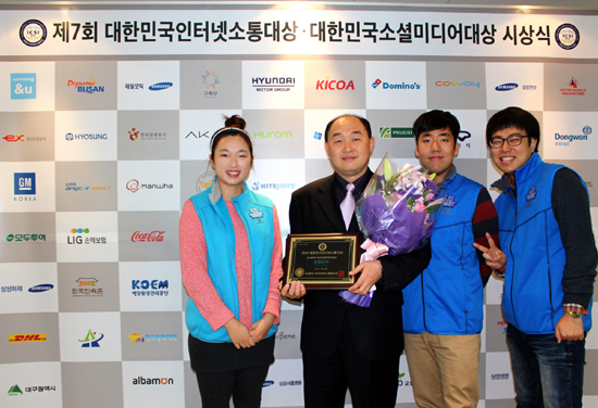 (사)한국인터넷소통협회가 주최하고 미래창조과학부가 후원하는 이 상은 홈페이지와 블로그, 트위터, 페이스북 등 온라인 분야 운영성을 종합 평가해 시상한다. 고객과 소통이 활발한 신뢰받는 기업과 공공기관을 발굴, 시상하는 이 부문 최고권위의 상으로 꼽힌다.(사진:중앙 유세종 홍보팀장 좌우 홍보대사 아라미)