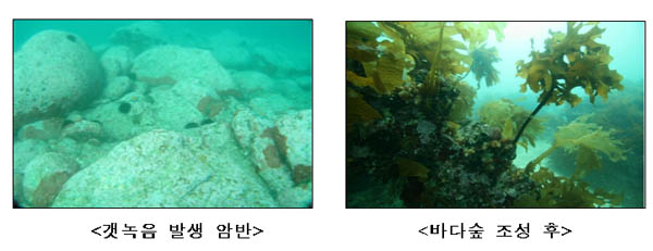 해양수산부는 갯녹음으로 황폐해진 해양환경을 되살리기 위하여 2030년까지 전국 연안에 ‘바다숲’ 35,000ha를 조성할 계획이다. 바다숲 조성은 2009년에 시작되어 지난해까지 6년간 약 5,710ha의 해양환경을 복원하였다. 올해는 지난해보다 30억 원이 증가한 357억 원을 투입하여 역대 최대 규모인 3,078ha를 더 복원한다.