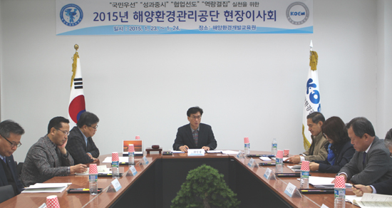 해양환경관리공단(KOEM, 이사장 곽인섭)은 1월 23일부터 24일까지 이틀간 부산에서 2015년도 상반기 현장이사회를 개최했다. 현장중심의 경영체제를 강화하기 위하여 개최한 이번 현장이사회에는 곽인섭 이사장을 비롯한 상임 및 비상임이사 전원이 참석했다.