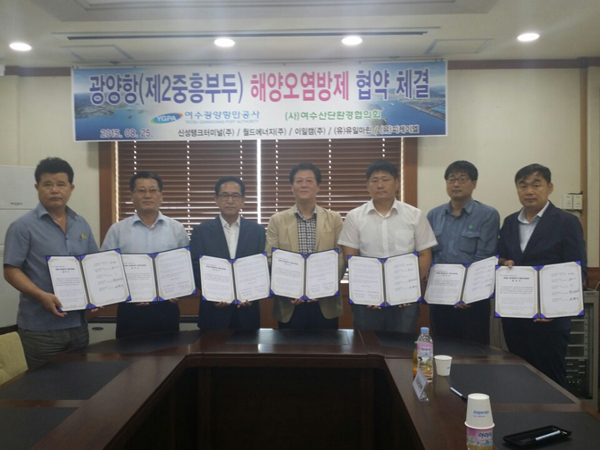 여수광양항만공사(사장 선원표, 이하 공사)는 25일 한국산업단지공단 여수광양지사에서 (사)여수산단환경협의회(상임이사 박광식)를 비롯한 4개 화주사와 방제업체가 참석한 가운데 ‘광양항 제2중흥부두 해양오염방제 협약’을 체결했다.