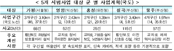 가평 칠곡 등 14개 국도구간, 차량속도 하향 및 안전시설 확충
