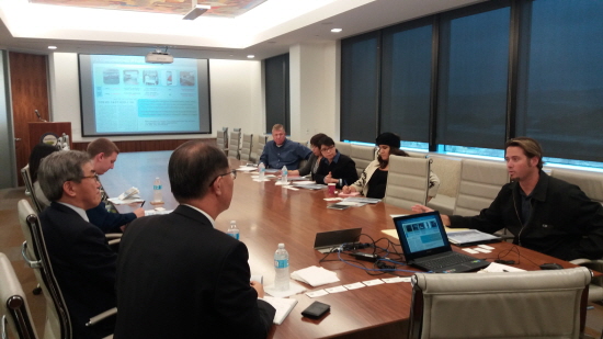 (사진 : 19일 미국 LA에서 선키스트의 제이슨 머레이 세일즈 매니저를 비롯한 관계자들과 오렌지 화물 수출입에 대해 의견을 교환하고 있는 유창근 사장(왼쪽 두 번째)