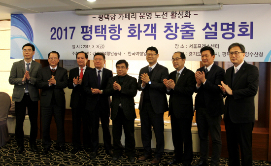 신규 평택항 국제여객터미널 착공을 앞두고 평택항의 관광객 유치를 위해 평택항 관계기관들이 팔을 걷어 부쳤다. 경기평택항만공사와 한국여행업협회가 주최·주관하고 경기도와 평택시, 평택지방해양수산청이 후원한 ‘2017 평택항 화객 창출 설명회’가 3일 서울 프레스센터에서 국제카페리 선사 및 국내 주요 여행사, 물류기업 관계자를 대상으로 이뤄졌다.