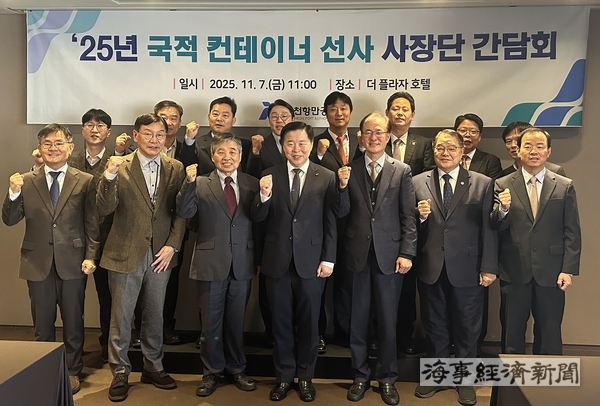 인천항만공사는 11월 7일 서울 중구 더플라자호텔에서 인천항 기항 국적 컨테이너선사 사장단을 초청해 인천항 활성화를 위한 상생협력 방안을 논의했다. 간담회에는 이경규 인천항만공사 사장과 한국해운협회 부회장, 국적선사 대표 및 임원 등 15명이 참석했다.