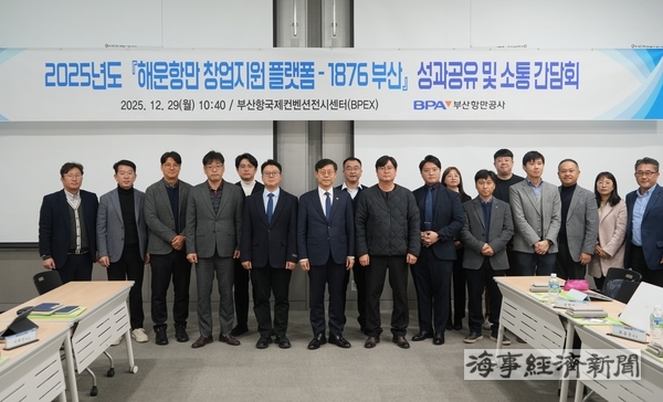 부산항만공사(BPA·사장 송상근)는 해운항만 창업지원 플랫폼 ‘1876 부산’ 입주기업과 함께 2025년 한 해 성과를 공유하고 내년도 지원 확대 방향을 논의하는 간담회를 29일 부산항국제전시컨벤션센터(BPEX)에서 개최했다고 30일 밝혔다.