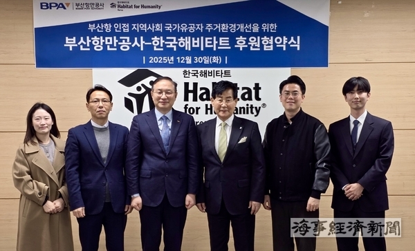부산항만공사는 12월 30일 한국해비타트와 ‘항만 인근 국가유공자 주거환경 개선’을 위한 업무협약(MOU)을 체결했다고 31일 밝혔다. 협약식에는 BPA 정원동 경영부사장과 한국해비타트 윤형주 이사장이 참석했다.