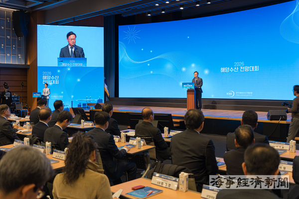 한국해양수산개발원(KMI)은 1월 15일 서울 대한상공회의소에서 ‘2026 해양수산 전망대회’를 열고 급변하는 대외 환경 속 해양수산 분야의 주요 이슈와 2026년 전망, 산업별 대응 전략을 공유했다. 이날 행사에는 정부, 산업계, 학계, 연구기관 관계자 등 1,000여 명이 참석했다.