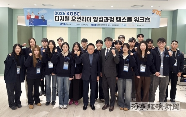 한국해양진흥공사(해진공)가 해양 물류 산업과 인공지능(AI)을 접목한 청년 인재 양성에 나선다. 해진공은 1월 27일부터 29일까지 부산 그랜드모먼트에서 ‘2026 KOBC 디지털 오션리더 양성 프로그램’의 핵심 과정인 캡스톤 워크숍을 진행한다고 28일 밝혔다.
