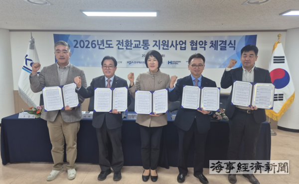 한국해운조합은 3월 31일 부산지부에서 해양수산부와 포스코, 현대글로비스, 현대제철을 비롯한 화주기업, 종합물류기업, 해운선사 관계자들이 참석한 가운데 2026년 전환교통 지원사업 협약식을 개최했다고 4월 1일 밝혔다.