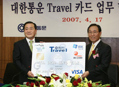 대한통운이 18일 기업은행 BC카드와 제휴해 ‘대한통운 트레블(Travel) 카드’를 선보인다.