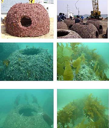 국립수산과학원 제주수산연구소에서는 ‘90년대에 제주시 외도연안에 시설한 반구형 어초중 일부를 유절석회조류 등을 제거하고 재시설한 결과, 해조류를 비롯한 다양한 수산생물의 부착효과가 탁월하게 나타났다고 밝혔다.