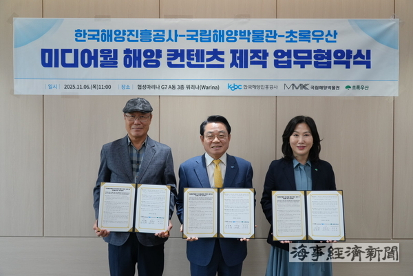 한국해양진흥공사가 국립해양박물관과 초록우산 어린이재단과 함께 미디어월 해양 콘텐츠 제작과 운영을 위한 3자 협약을 맺었다. 협약식은 11월 6일 부산 코비씨 워리나에서 열렸다.