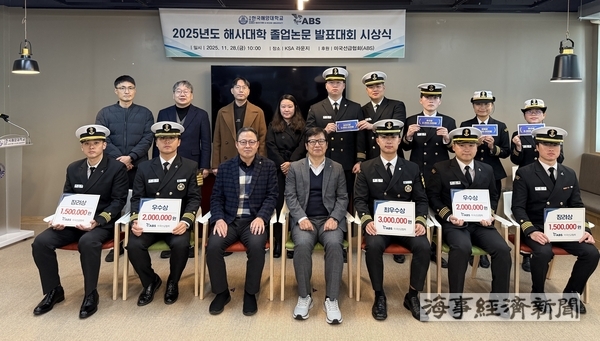 국립한국해양대학교 해사대학(학장 김종수)이 11월 28일 해사대학관 KSA라운지에서 ‘2025학년도 해사대학 졸업논문 발표대회 시상식’을 열고 우수 졸업논문 팀을 시상했다.