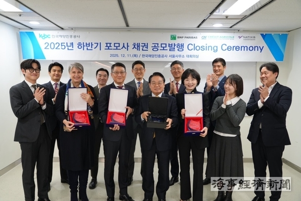한국해양진흥공사(해진공)는 지난 12월 11일 포모사 채권의 성공적 발행을 기념하는 행사와 함께 2026년 자금시장 점검 간담회를 열고, 국제금융시장 동향과 향후 발행 전략을 논의했다고 15일 밝혔다.