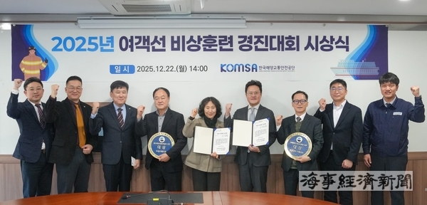 한국해양교통안전공단(KOMSA, 이사장 김준석)은 여객선 전기차 화재와 비상조타 사고 대응 역량을 높이기 위한 ‘2025년 여객선 비상훈련 경진대회’를 열고 우수 선박 12척을 선정했다고 23일 밝혔다.