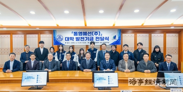 국립한국해양대학교는 3월 11일 대학본부에서 통영예선 대학 발전기금 전달식을 열었다고 밝혔다.