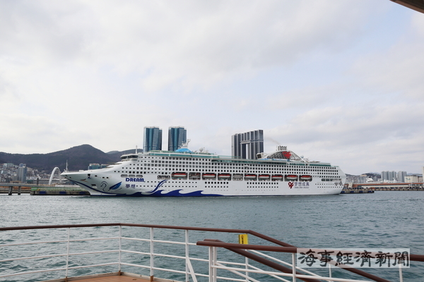 BPA 사옥 인근의 선착장을 출발한 < e그린 >호는 30여분간 부산 북항 해역을 조용히 왕복 운항했다. 출발한 지 10여 분 정도 지나자 선박 왼편으로 한자로 몽상(夢想), 영어로 드림(DREAM)이라고 쓰인 여객선이 보였다. 요즘 부산항을 많이 찾는다는 중국계 크루즈선이었다. 올해 부산항에 들를 계획인 중국발 크루즈는 170여 척에 이른다고 한다.