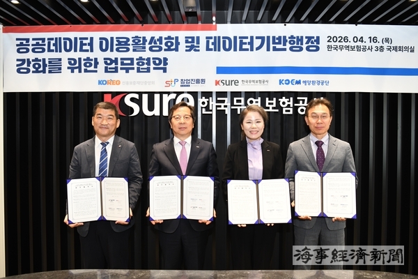 해양환경공단이 신용보증재단중앙회, 창업진흥원, 한국무역보험공사와 손잡고 공공데이터 활용 확대와 데이터 기반 행정 강화를 위한 협력에 나섰다.