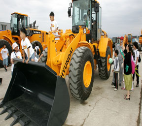 또한 건설장비 쇼는 굴삭기와 휠로더 등을 이용해 다양한 동작을 연출하는 것으로, 어린이들의 눈과 귀를 사로잡기에 충분했으며 행사 후에는 운전석에서 기념촬영을 하기도 했다. (사진:어린리들이 건설장비에 시승)