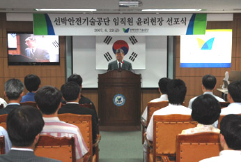 선박안전기술공단은 지난 22일 본부 대회의실에서 공단 전임직원이 참석한 가운데 임직원으로서 갖춰야 할 윤리강령 및 실천준칙을 선포했다.