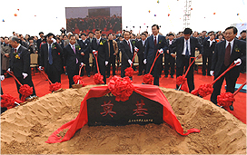 생산기지별로는 STX조선의 진해조선소가 59척, 30억불을 수주했고, STX 중국 조선해양 종합생산기지 내 대련조선소가 33척, 17억달러를 달성했다. (사진:올들어 지난3월30일 중국 대련조선해양생산기지 기공식장면)