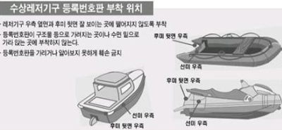 등록 대상 수상레저기구는 수상오토바이, 20마력 이상 선외기 엔진이 장착된 모터보트, 30마력 이상 엔진이 장착된 고무보트(일명 콤비보트) 등이며, 등록에 앞서 안전검사와 책임보험에 가입하고 소유자 주소지를 관할하는 시장·군수·구청장에게 등록해야 한다.