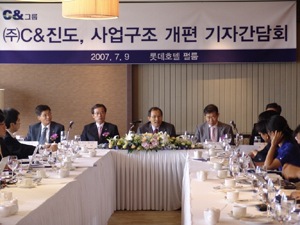 ㈜C&진도의 임갑표 부회장은 9일, 기자간담회를 열고 계열사인 ㈜C&중공업의 조선사업부문 영업양수도 및 알루미늄 제조업체인 ㈜C&효성금속에 대한 합병을 추진한다고 밝혔다.