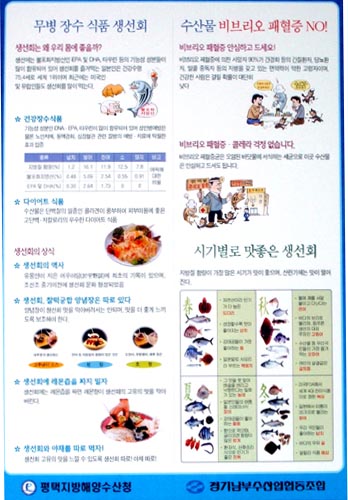 특히, 평택지방해양수산청은 수산물 소비촉진 및 비브리오예방 홍보를 위하여 경기남부수산업협동조합과 합동으로 ▲수산물이 건강에 좋은 이유, ▲수산물의 중요 영양소, ▲생선회 상식, ▲시기별 맛좋은 수산물, ▲비브리오 패혈증 상식의 내용을 체계적으로 수록한 대형 칼라포스터(가로 53cm, 세로 75cm)를 액자로 제작하여 경기지역 횟집, 수협은행, 수산물도매시장, 수산물직판장, 어촌계 등에 보급하여 건강식품으로서의 수산물의 우수성을 널리 알리고 있다.