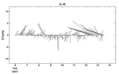 또 연구소에서 운영중인 연안정보시스템(강원도 삼척시 장호항 1.5km 해상)의 수층별 자료를 분석한 결과, 8월 8일 이후부터 낮아지기 시작하여 8월 16일 현재 표층은 약 8℃, 저층(수심 25m)은 약 4.5℃를 보이고 있어, 표층 수온은 8월 초순에 비해 15℃ 이상 낮게 나타났다.