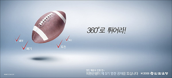 외환은행의 광고카피 360˚로 튀어라에는 열린채용의 의미가 함축되어 있다. 학력과 나이에 상관없이 글로벌 금융시장에 도전하겠다는 열정과 패기, 그리고 끊임없이 변화를 창조하려는 사람이라면 외환은행과 함께 세계무대로 튀어 오르라는 의미다.