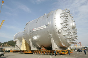 한편, 현대중공업은 1992년 인도네시아 엑소르(Exor) 공사를 시작으로 GS칼텍스, SK, 오만의 소하르(Sohar) 등 총 5개의 공사에 정유 고도화 설비를 납품, 그 기술력을 인정받은 바 있다. (사진: 현대중공업이 오만의 소하르 공사에 납품한 촉매재생기.)