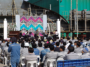 또 9일(화)에는 부산 송정동에 위치한 조선 선실전문 생산업체 오리엔탈정공을, 11일(목)에는 충북 음성에 있는 자사 건설장비 생산공장으로 자리를 옮겨 근로자들을 위로할 계획이다. 생산현장은 아니지만 ‘찾아가는 음악회’라는 타이틀로 소외계층도 찾아 위안을 주고 있다.