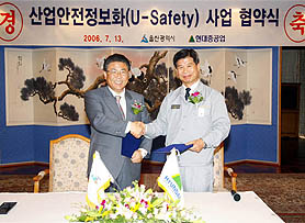 현대중은 7월 13일 오전 11시 30분 회사 내 영빈관에서 현대중공업 최길선 사장과 박맹우 울산광역시장, 정보통신부 산하 한국소프트웨어진흥원 김재수 단장 등 관계자들이 참석한 가운데 ‘산업안전정보화(U-Safety)’사업 협약식을 체결했다.