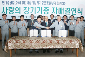 이밖에 현대중공업은 최근 일산 킨텍스(KINTEX)에서 열린「2007 한국국제건설기계전」에서는 고객들을 대상으로 캠페인을 펼쳐 80여명의 참관객이 장기기증 및 후원활동에 참여할 수 있도록 했다.
