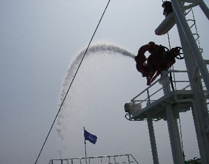 무궁화32호에 설치된 방수포는 태안 앞바다에 흩어져 있는 유군을 효과적으로 분산시켜 유류오염방제에 중요한 역할을 담당하는 것으로 평가되고 있다.