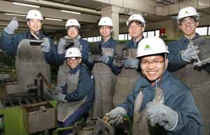 한편 현대중공업과 현대미포조선, 현대삼호중공업 등 현대중공업그룹은 올해 대졸신입사원 447명(1차 146명, 2차 159명, 3차 142명)을 선발했으며, 이들은 경영일반과 전문직무에 대한 교육 외에도 30km 행군, 산악 극기훈련, 사회복지시설에서의 ‘봉사교육’ 등을 거치며 몸과 마음이 건강한 사회인으로서의 첫 발을 내디뎠다.(사진: 현대중공업 신입사원들이‘장인혼 교육’을 통해 용접, 철판 절단을 직접해 보며 생산현장을 체험하고 있다.)