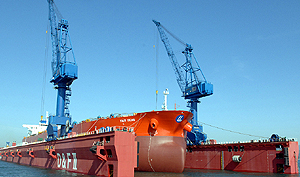 新공법 적용 플로팅 도크(Floating Dock)에서 대형 유조선 진수