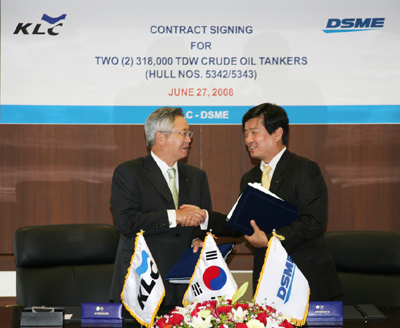 대우조선해양(대표 남상태, www.dsme.co.kr)은 27일 대한해운과 합작 설립한 파나마의 DK마리타임사로부터 32만톤의 원유를 실어 나를 수 있는 초대형 유조선 2척을 수주하는 등 이달 들어 초대형 유조선 9척과 드릴십 1척, 벌크선 2척 등 총 12척 23억달러 상당의 선박을 수주했다. 이들 선박은 오는 2012년까지 모두 인도할 예정이다.