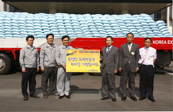 현대중공업은 5일 오전 10시 울산 동구청을 방문해 백미 1천341포(20kg 기준)를 기증했다. 이 행사에는 현대중공업 경영지원본부 심환기(沈煥基) 상무와 이상진(李相珍) 동구 부구청장 등이 참석했으며, 전달된 쌀은 지역의 기초생활수급자 1천341가구에 지급된다.