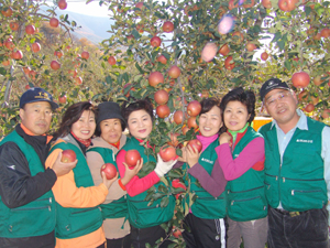 과수 농가를 돕기 위해 휴일 아침부터 봉사에 나선 이들은 사과 수확과 함께 색깔과 크기 등에 따라 사과를 분류해 이를 저장창고로 운반하는 작업을 도왔다.