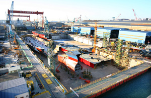 한편 현대중공업은 도크 없이 육상에서 대형 선박을 건조하는 ‘육상건조공법’, 선박을 진수할 때 함께 건조 중인 다른 선박 블록을 물에 가라앉혀 건조 공기를 줄이는 ‘탄뎀침수(沈水)공법’ 등 끊임없는 연구 개발을 통해 조선분야 세계 1위 경쟁력을 지키고 있다.