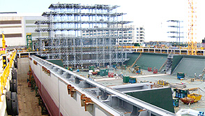 현대중공업은 작년 7월부터 이 스카폴딩을 총조방식으로 설치키로 하고, 올해부터 가동에 들어간 울산 남구 용연공장에 1만2000여평의 조립장 부지를 확보 하는 등 착실히 준비를 해왔다.