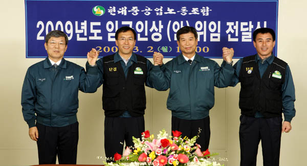 또한 세계적인 경제 위기를 맞아 노사가 다시 힘을 모아 극복하자는 의미로 위임서를 전달한다며, 노조가 고통 분담을 선택한 만큼 회사도 조합원의 근로 조건 향상과 유지에 적극 나서 주길 바란다고 강조했다.