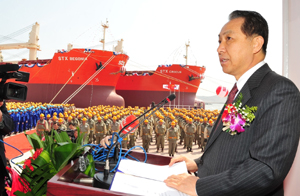 강덕수 회장(상단 사진)은 이 날 명명식에서 “STX 다롄 생산기지의 착공으로부터 불과 2년, 생산개시로부터는 1년 만에 제1호선을 인도하게 되어 자랑스럽고 감격스럽다”며 “이번 명명식은 STX가 World Best로 도약하는 첫 번째 상징이 될 것”이라고 강조했다.
