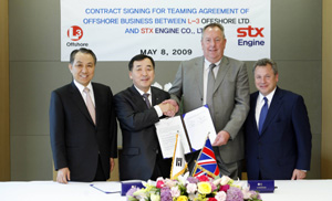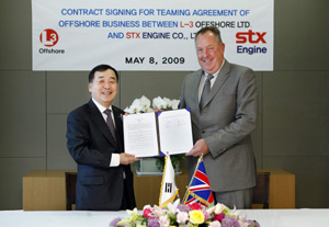 STX엔진은 서울 중구 남대문로5가 STX남산타워에서 강덕수 STX그룹 회장, 정동학 STX엔진 사장 및 마이클 스트리에니스(Michael Strianese) L-3 커뮤니케이션 그룹(L-3 Communication) 회장, 클라우스 로렌츠(Klaus Lorenz) L-3그룹 유럽부문 부사장 등 관계자들이 참석한 가운데, 오프쇼어 선박의 전장(전기전자장치) 시스템에 대한 사업 협력 계약을 체결하고 상호협력 확대방안을 논의했다고 10일 밝혔다.