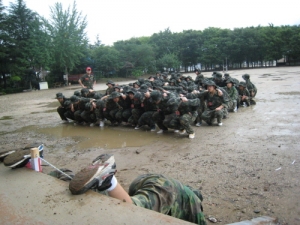 “자신감은 목소리에서 나온다. 젖 먹던 힘까지 내란 말야!” 구령과 목소리가 작아지면 어김없이 교관으로부터 ‘앉아뛰며 돌기’나 ‘어개동무 실시’로 얼차려가 가해졌다. 초등학생으로 보이는 교육생 서너명이 눈물을 훔치기도 했다.
