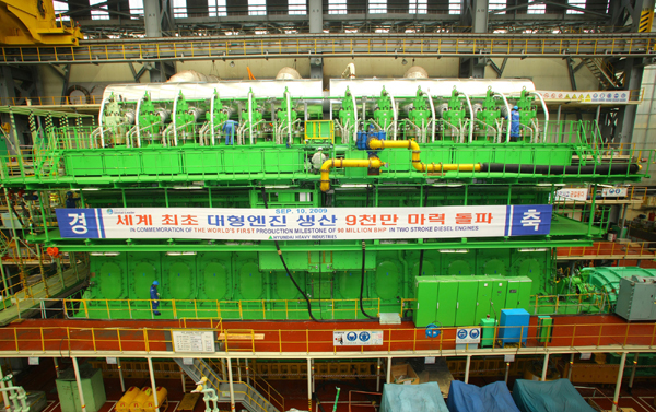 현대중공업은 1979년 6월 처음으로 엔진을 생산한 이래 13년 만인 1992년에 1천만 마력, 5년 뒤인 1997년 2천만 마력을 달성했으며, 2001년 3천만 마력을 기록한 이후에는 2년 주기로 1천만 마력씩 늘려 2003년 4천만 마력, 2005년 5천만 마력을 달성했다.